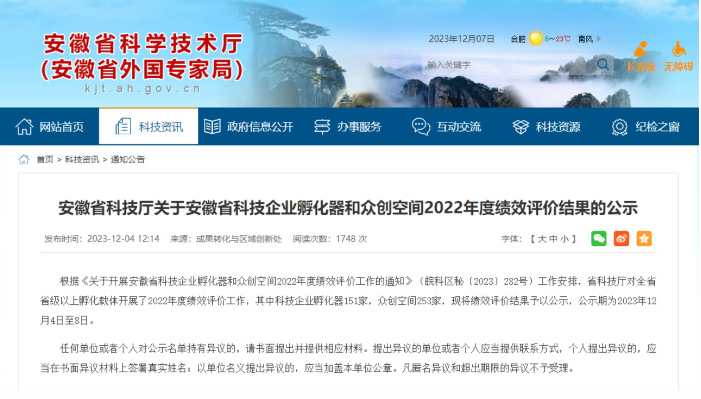 近日,安徽省科学技术厅发布《安徽省科技企业孵化器和众创空间2022年度绩效评价》结果,开云线上官网_开云(中国)运营的省级众创空间“零壹双创孵化基地”获优秀等次。