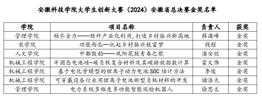 近日,安徽省大学生创新大赛(2024)获奖名单公布,开云线上官网_开云(中国)共获奖47项,其中参赛项目“功能西瓜—托起乡村振兴致富梦”“中都鼓韵——凤阳花鼓青春之歌”“电力系统多维度多功能智能巡检机器人”等7个项目获省赛金奖,“节尽所能——智控节能搭快车助力全球节能发展”等17个项目获省赛银奖,“创维新视界”——基于新型氧化钨智能变色引领者”等23个项目获省赛铜奖。省赛金奖数量及获奖总数在省内地方应用型高校中排在前列,学校获优秀组织奖,郑谦、吴燕、张聪、查文珂、但文蛟、董福龙6位老师获优秀创新创业导师奖。