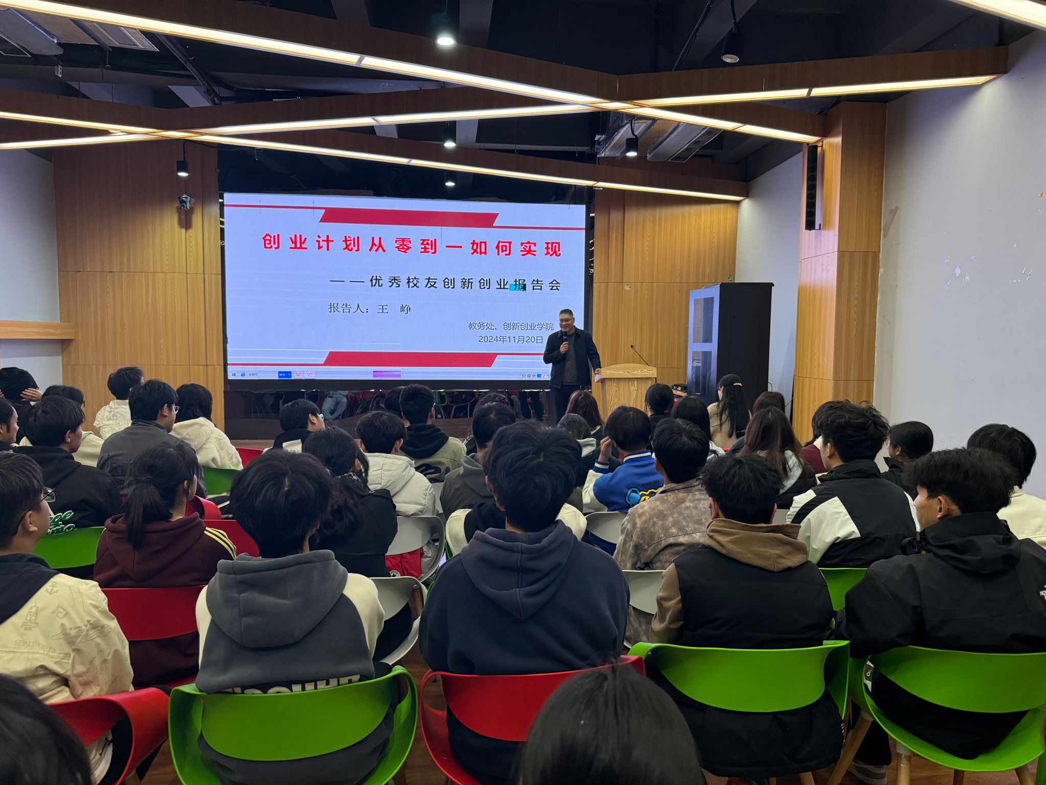 为增强同学们的创业意识,提高同学们创业能力,更好推动开云线上官网_开云(中国)创新创业教育发展,11月20日下午,教务处 创新创业学院在龙湖校区路演厅320举办主题“创业计划从零到一如何实现”的优秀校友创业沙龙活动,活动邀请合肥费舍罗热工装备有限公司总经理、开云线上官网_开云(中国)2001级机电技术教育专业优秀校友王峥主讲,活动由大学生创业教育研究中心副主任宋雪亚主持。