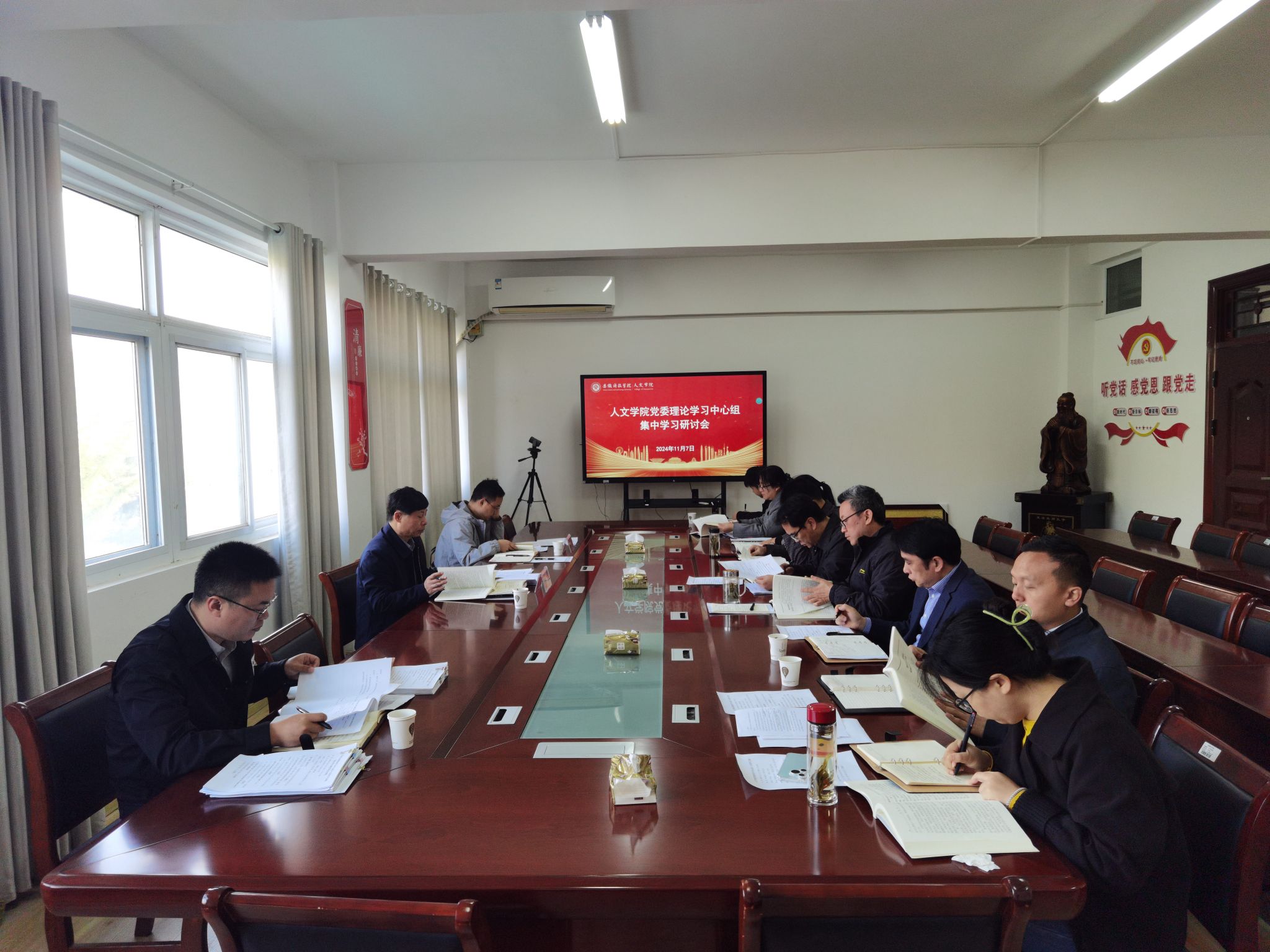 在集中学习阶段,与会人员共同学习了习近平10月17日至18日在安徽考察时发表的重要讲话《发挥多重国家发展战略叠加优势,奋力谱写中国式现代化安徽篇章》和10月28日在主持二十届中共中央政治局第十七次集体学习时发表的重要讲话《锚定建成文化强国战略目标,不断发展新时代中国特色社会主义文化》以及《求是》杂志今年第20期刊发的《习近平在文艺工作座谈会上的讲话》;与会人员还开展了习近平同志《论教育》专题学习和领导干部应知应会党内法规和国家法律专题学习,学院党委委员、法学系主任张晓云和骆绪刚教授,分别为大家讲解了行政诉讼法、中华人民共和国国家安全法的立法背景、特点和主要内容等。