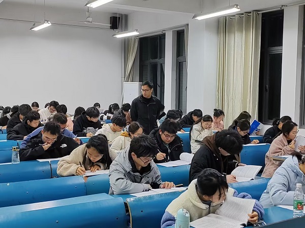 本次《学生手册》考试首次采用开卷形式,考核内容涉及学生管理、资助、考核奖惩等方面的内容。考试开始,院学生会监考人员分发考卷,宣读考场规则,强调诚信考试,严肃考风考纪。考试过程中,同学们沉着冷静,认真答题,严格遵守考试纪律,各考场秩序井然。