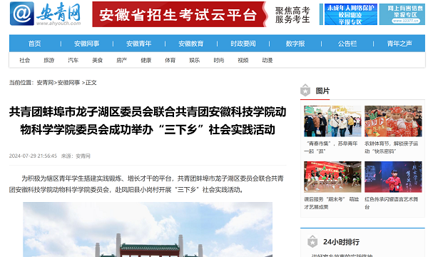 2024年,开云线上官网_开云(中国)动物科学学院团委在学院党委和学校团委的正确领导下,深入学习贯彻习近平新时代中国特色社会主义思想和党的二十大和二十届三中全会精神,紧扣立德树人根本任务,坚持“服务青年成长成才、助力学院跨越发展”的工作主线,砥砺前行、创新求变。各项工作得到了安徽共青团网站、蚌埠市人民政府网站、安徽青年报、安青网等多家媒体的集中报道与关注。学院团委紧紧围绕立德树人根本任务,不断创新工作思路,在思想引领、实践育人、创新创业及志愿服务等方面多点发力,取得了丰硕成果。