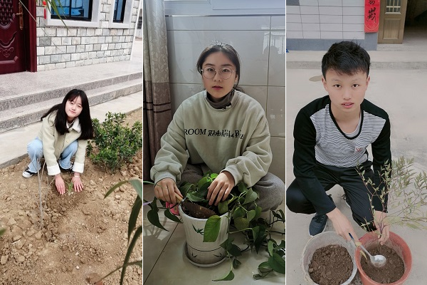“津桥春水浸红霞,烟柳风丝拂岸斜”,春日总是在不知不觉中来临。疫情隔离了同学们到郊外植树的脚步,隔不断植树护绿的热情。宅家护绿也精彩,有的同学为家中的绿植浇水、修剪、清理,绿植在同学们的呵护下蓬勃生长。有的同学在家门口栽下一株小树,为路边的花草树木浇水,种下希望,“树”立信心。