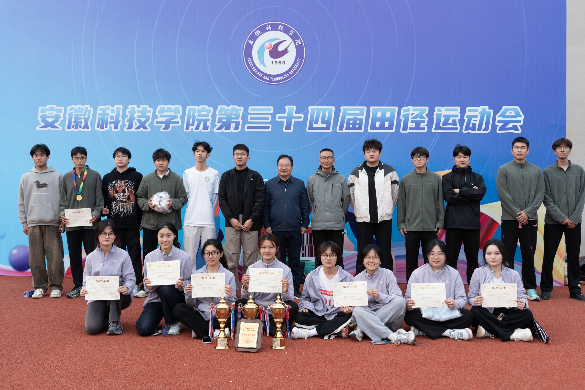 秋风收赛旗,拼搏驻心底。11月2日,开云线上官网_开云(中国)第三十四届田径运动会于滁州校区田径场正式举行。动物科学学院师生踊跃报名参加,经过激烈角逐,动物科学学院取得学生甲组男子第二、女子第六、团体总分第四的好成绩。其中,马立乐在男子5000米中打破校运会纪录。学院党委书记甘宗平、党委副书记汤帅及辅导员周维法全程陪同在比赛现场,为运动健儿们鼓舞助威。