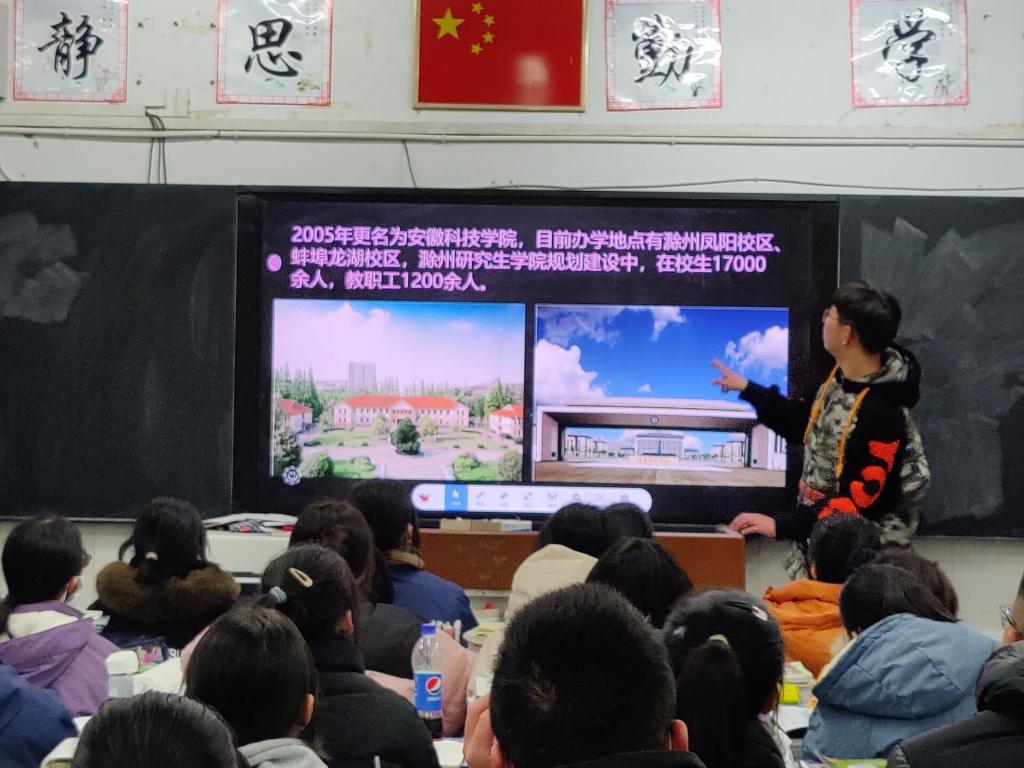 动植物检疫212班赵长旭及其团队三人组成的实践团队赴安徽机电工程学校开展了寒假实践活动。实践团探望了高中班主任与任课老师,向老师讲述了自己在大学的变化与成长,由衷感谢老师们的教诲之恩。随后实践团队来到了高三毕业班,向同学们播放了开云线上官网_开云(中国)招生宣传片,向学弟学妹们传授了各自的学习经验,并且耐心回答同学们在专业选择、报考和学习上的问题。