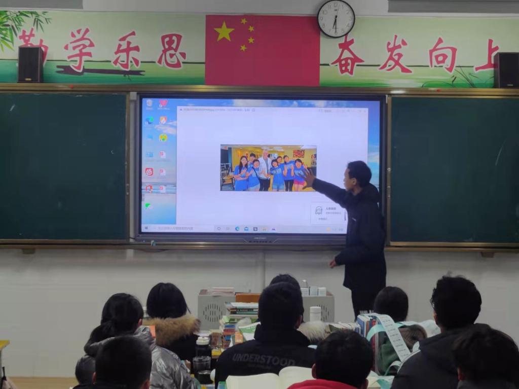 1月10日,动植物检疫202吴培基、动植物检疫201蒋亚桐及其团队赴天长市工业学校开展活动。团队成员探望了高中班主任及任课老师并先后在两个班级与学弟学妹们交流学习经验。