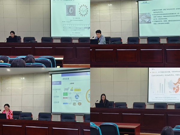 本期学术沙龙交流报告会,邀请2020级畜牧领域研究生丛潇、张孟然、金宏、张涛作报告,4名同学分别围绕各自的实践研究内容进行学术交流。