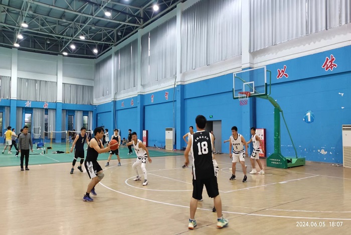 6月5日下午,安徽海盛教育科技有限公司篮球队应校教职工篮球协会邀请,在凤阳校区体育馆举行友谊比赛。