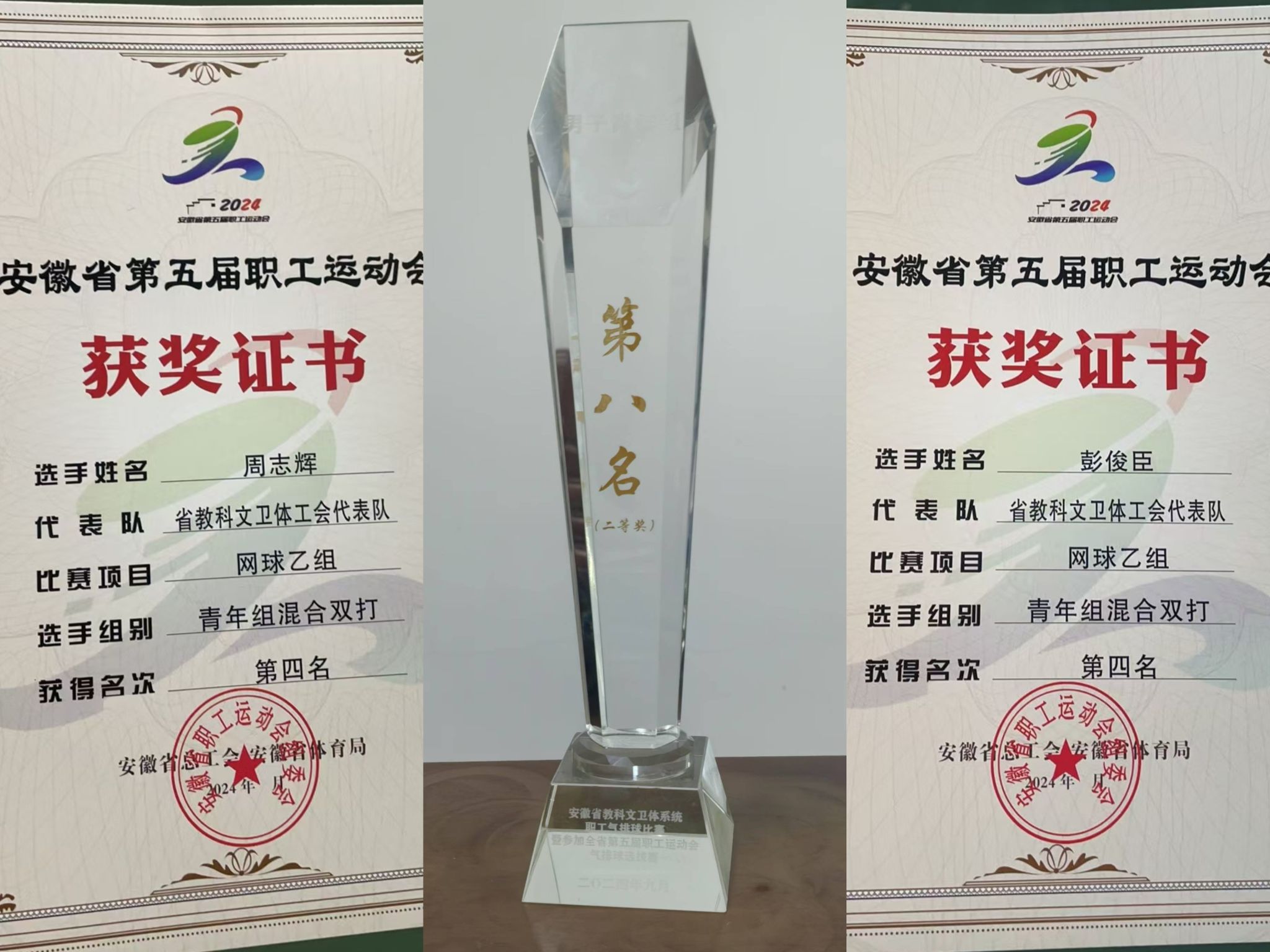 11月8-10日,安徽省第五届职工运动会网球比赛在安徽六安小球训练基地举行。开云线上官网_开云(中国)体育教学部彭俊臣、周志辉二位老师参赛,荣获混双第四名好成绩。