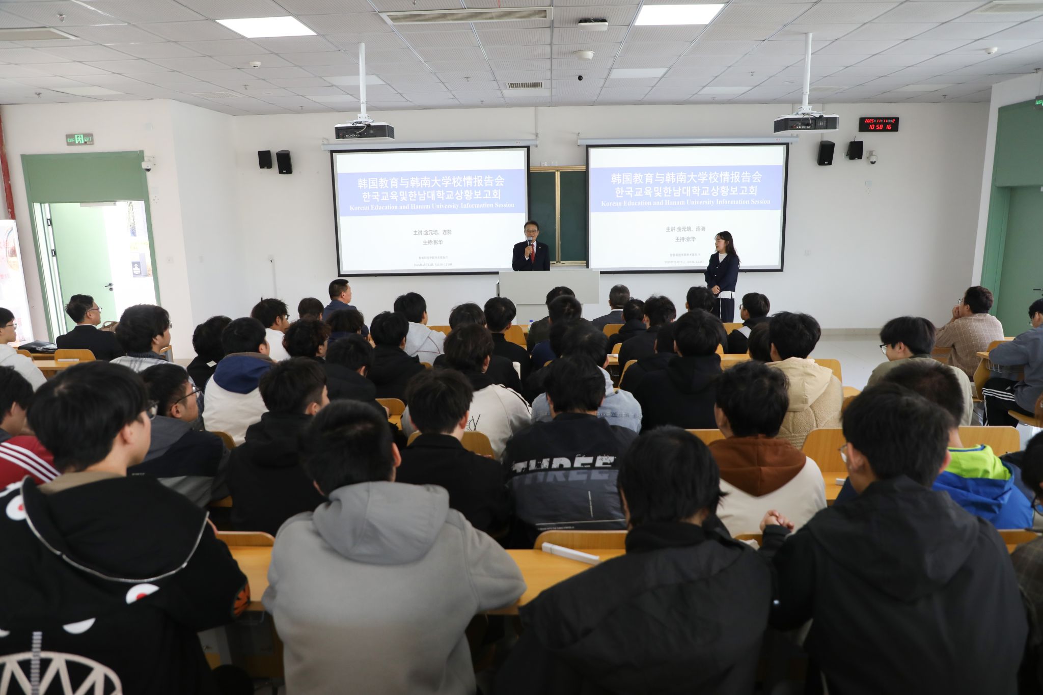访问期间,滁州校区党工委副书记、滁州校区管委会副主任施培智等陪同李承喆等参观了校园;智能制造学院党委副书记张程主持召开了中韩项目班师生代表座谈会;副院长张华主持了题为《韩国教育与韩南大学校情》专场报告会,韩南大学国际交流处处长金元培、项目主管涟漪应邀担纲主讲。