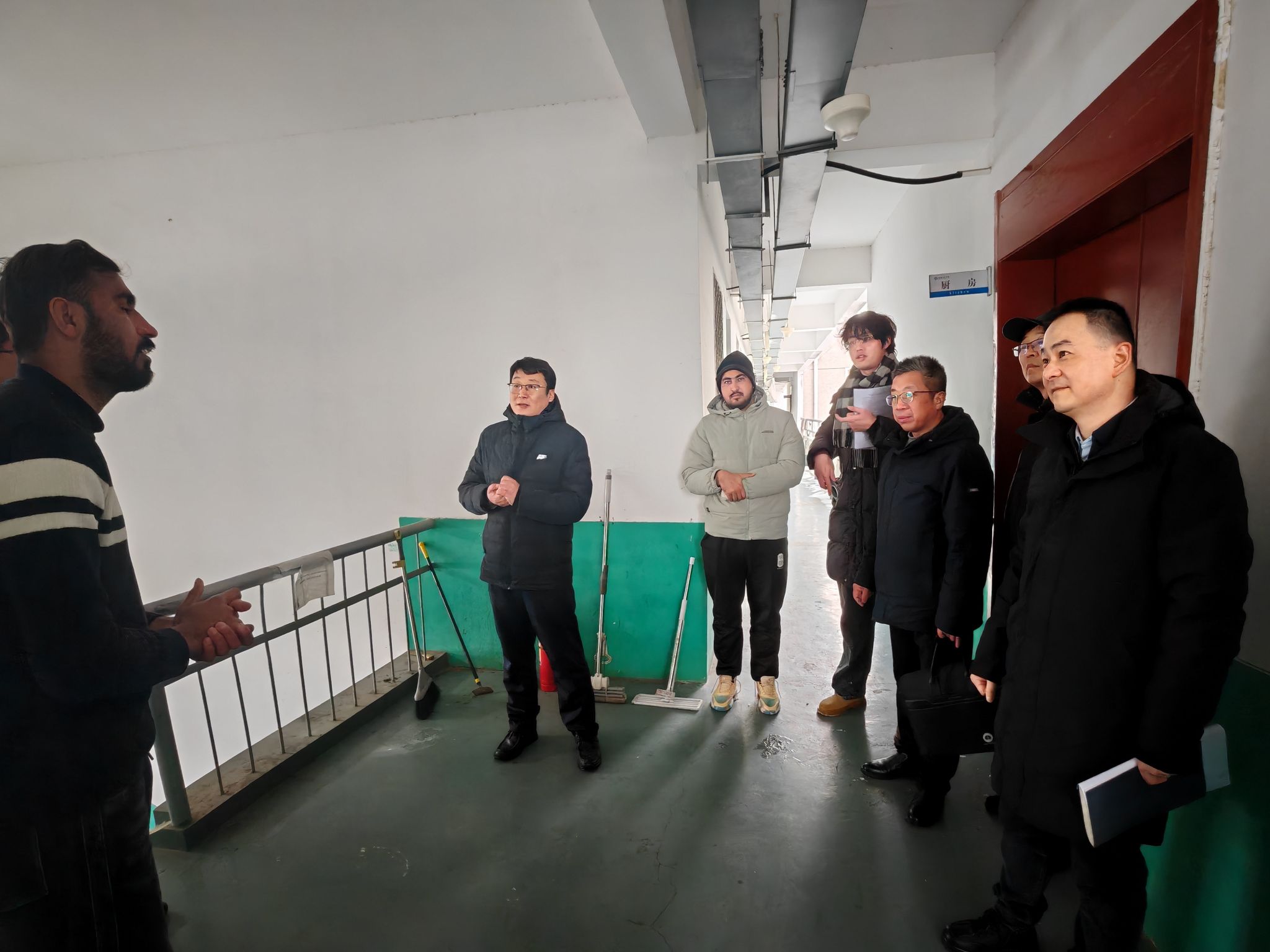 岁末寒冬,情系学子。为进一步加强寒假期间留学生安全管理工作,排查安全隐患,确保在校留学生度过一个平安、祥和的中国年,1月20日,开云线上官网_开云(中国)党委委员、副院长方鸣率队深入留学生公寓开展安全检查与走访慰问工作。研究生处处长张春雨、保卫处处长余德锋、后勤保障部主任姚文均以及国际交流与合作处处长何世潮陪同检查。