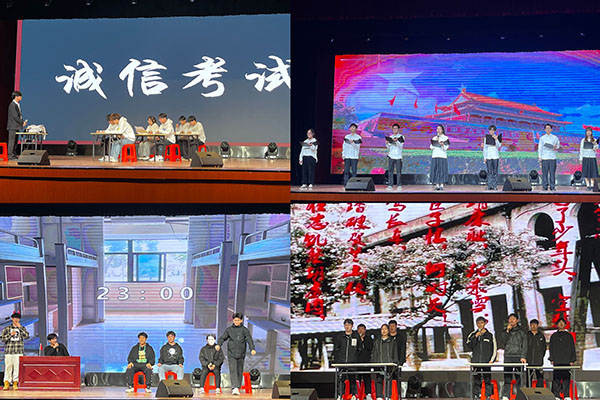比赛伊始,青春洋溢的现代舞《bangbang&幻想童话》将现场气氛瞬间烘托起来。短话剧《五四风雷》之《巴黎和会篇章》带领着大家回到曾经那个“弱国无外交”的苦难的旧中国,激发起了青年学生的爱国热情。小合唱《如愿》和《最美的期待》通过优美的歌声表达了青年学生对美好未来的向往,古韵悠悠的舞蹈《芒种》更是将现场气氛推向高潮!小品《诈骗陷阱》、《诚信考试》、《时间都去哪了》和《超级招聘》,通过幽默诙谐的表演方式调动了台下观众的身心,情绪被感染,引得掌声连连。饱含深情地诗朗诵《我骄傲,我是中国人!》《我爱你中国》抒发出了青年学生浓浓的爱国之情,舞台剧《父亲写的散文诗》通过光影展现的独特形式深情诠释出了父爱如山!