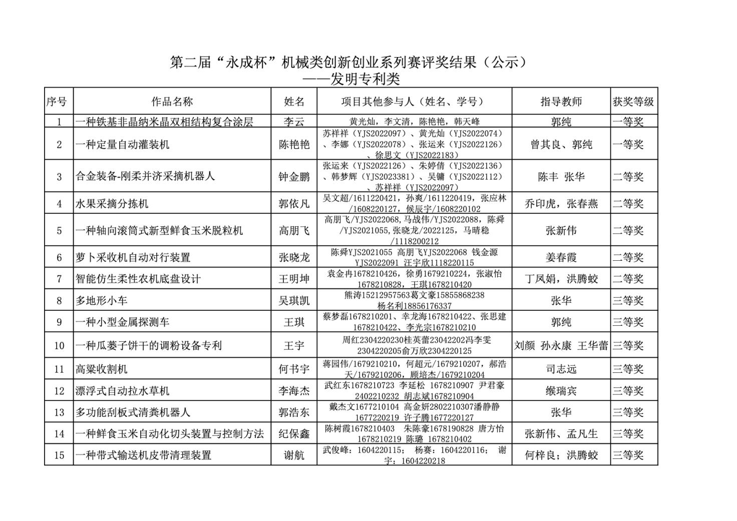开云线上官网_开云(中国)第二届“永成杯”机械类创新创业系列赛 获奖情况公示