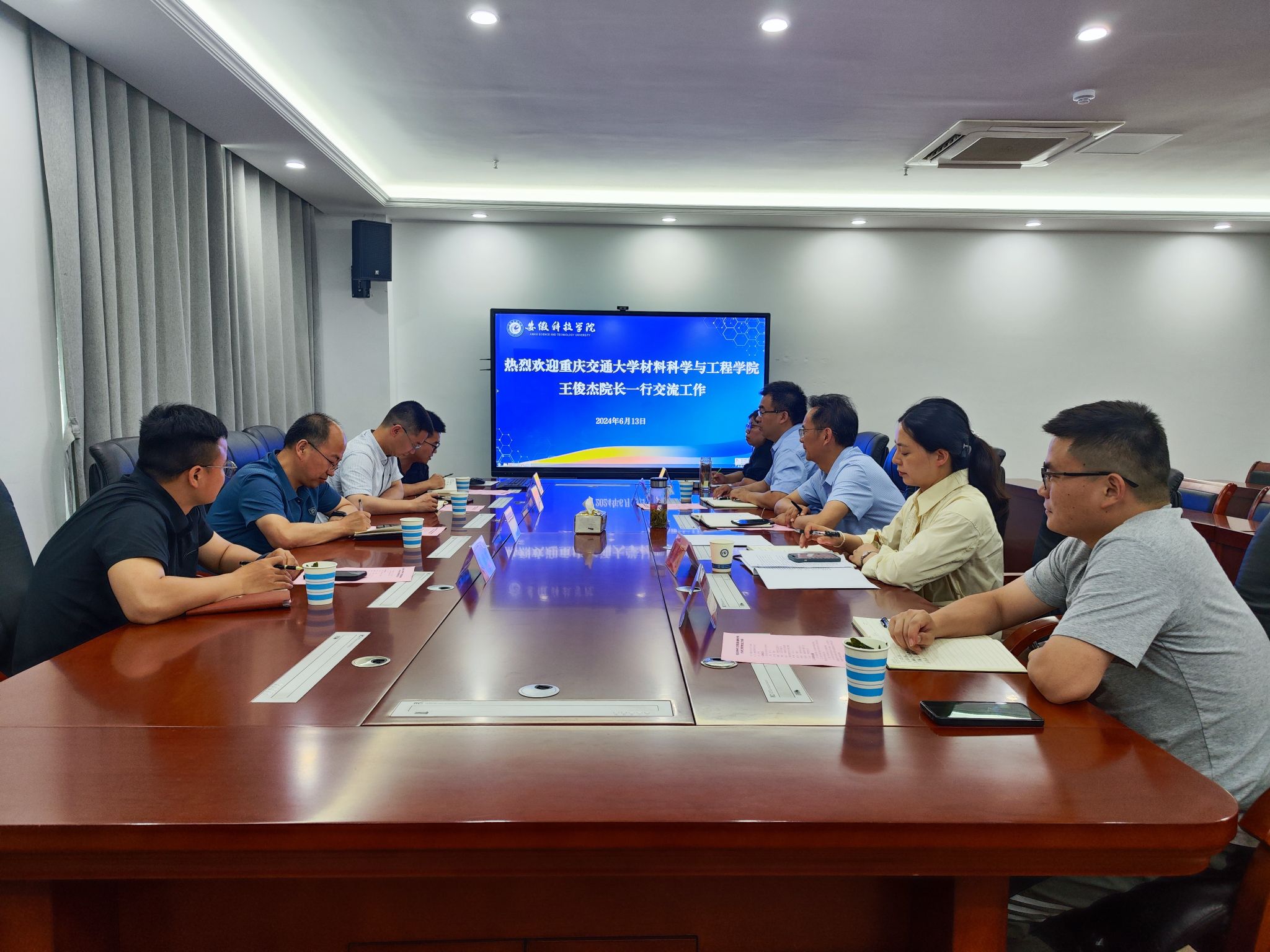 6月13日,重庆交通大学材料科学与工程学院院长王俊杰一行4人来开云线上官网_开云(中国)化学与材料工程学院考察交流。学院院长李子荣、副院长惠贞贞及部分系主任参加交流。
