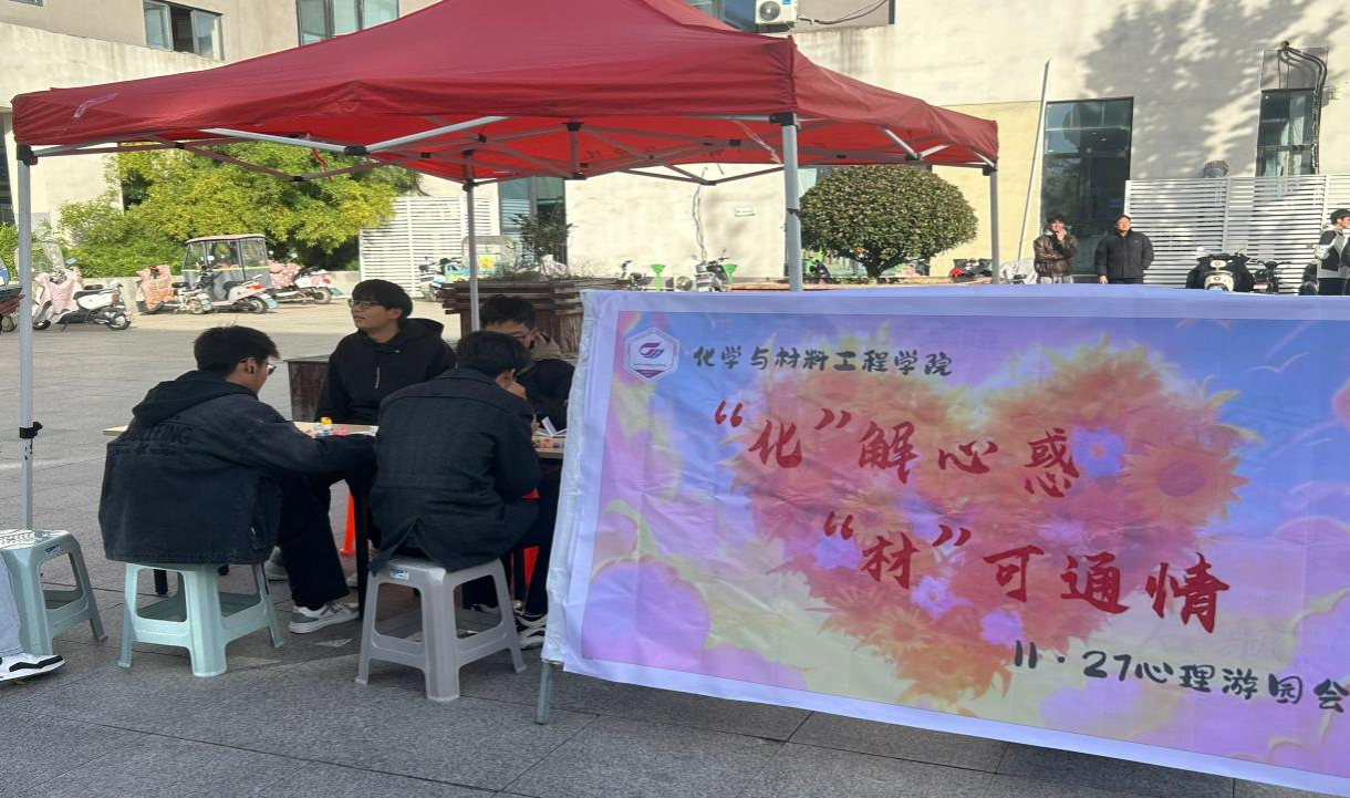 11月27日,学院心理游园会在龙子湖校区“一站式”学生服务社区东侧广场成功举办。活动现场设置了多个趣味十足的心理游戏摊位,此次活动以“化解心惑•材可通情”为主题,旨在营造关注心理健康,重视心理教育的浓厚氛围。活动现场设置了多个心理小游戏。同学们可以在“石膏涂色”游戏中陶冶情操,缓解压力,也可以在“海龟汤”活动中头脑风暴,获得乐趣。丰富的游戏设置和有趣的活动内容吸引了不少同学积极参加。心理游园会是化学与材料工程学院“12•15”心理健康活动月系列活动之一,是学院心理育人工作的重要体现,也让学生们对心理健康有了更加深入的认识和了解。