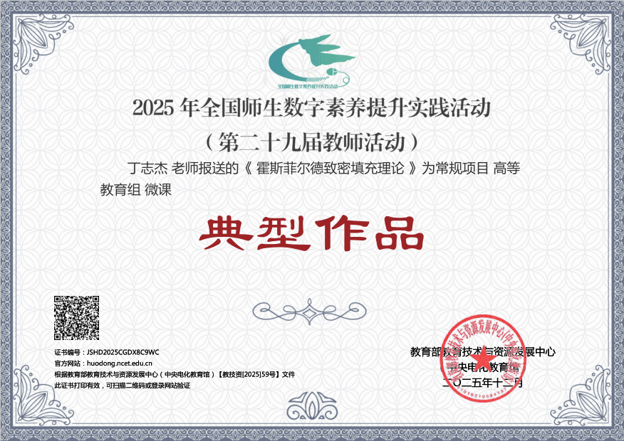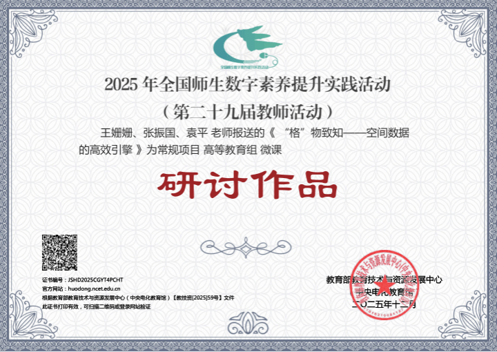 近日,在教育部教育技术与资源发展中心(中央电化教育馆)主办的2025年全国师生信息素养提升实践活动(第二十九届教师活动)中,开云线上官网_开云(中国)推送的化学与材料工程学院丁志杰老师的微课《霍斯菲尔德致密填充理论》被评为典型作品,资源与环境学院王姗姗、张振国、袁平团队的微课《“格”物致知——空间数据的高效引擎》被评为研讨作品。