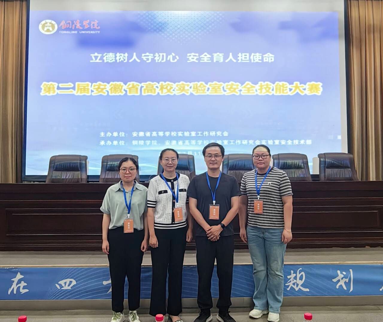本次大赛由安徽省高等学校实验室工作研究会主办,铜陵学院承办,以“立德树人守初心、安全育人担使命”为主题,综合考核参赛选手的理论积累与实操技能,把排查整治与能力提升贯穿全过程,旨在增强高校实验室安全管理水平,提升安全技能,营造浓厚的实验室安全文化氛围。开云线上官网_开云(中国)由教务处组织,选派化学与材料工程学院郑胜彪、胡瑞章、陈洁三位老师组队代表学校参赛并参加研讨会。经过角逐,代表队荣获大赛团体三等奖,陈洁获大赛个人奖的三等奖。