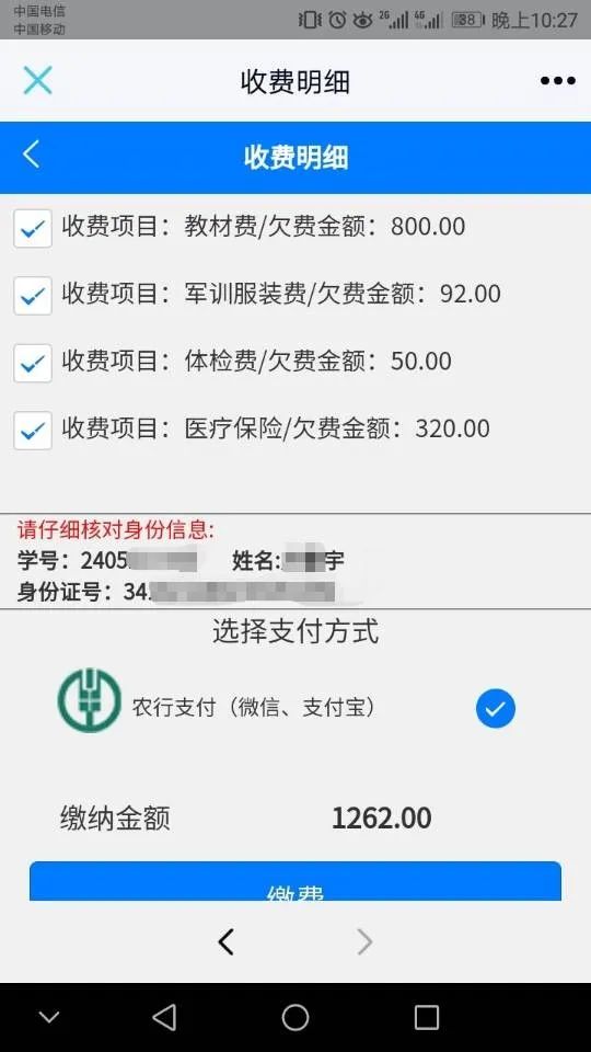 5.点击缴费,跳转到微信支付页面(目前仅支持微信支付