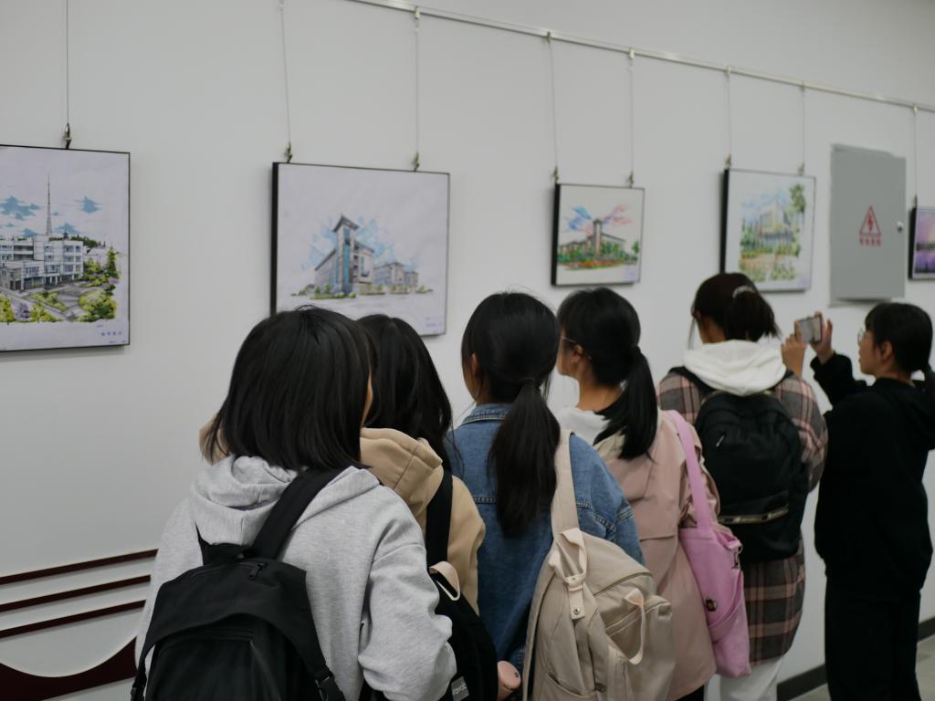 在美丽的校园全景沙盘模型旁,同学们兴奋地找寻教学楼、宿舍楼、操场以及日常活动场所;在校友的先进事迹报道原件前,各种表彰奖励的证书、奖牌、奖章及奖杯,激励着同学们砥砺奋进;在“手绘校园”师生书画展区,熟悉的校园一角在画纸上充分展现,作画者皆来自身边的老师和学长学姐,同学们纷纷投来羡慕的眼神。