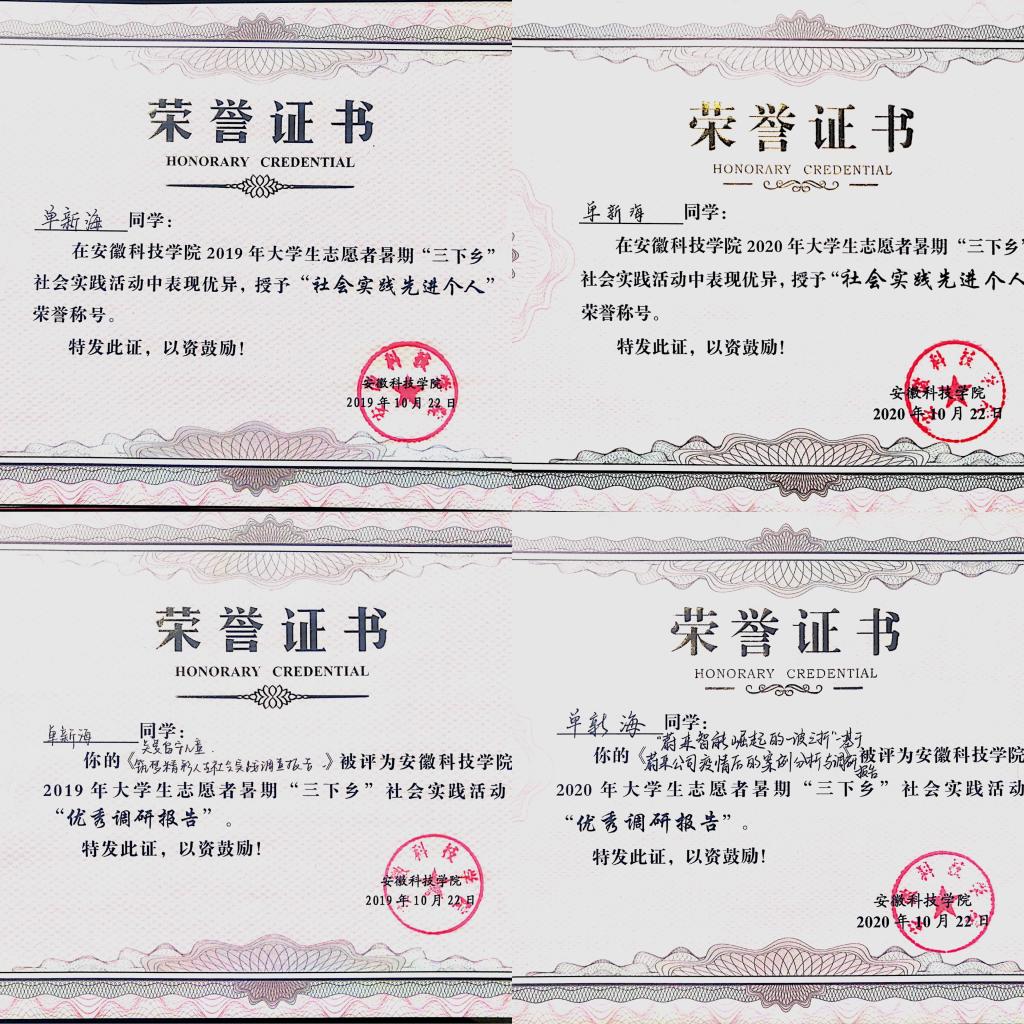 单新海父亲患有脑梗死、母亲腰间盘突出,腿部手术,家境贫寒加上自身心脏不好让他的求学之路比普通人更加艰辛,但是他仍不放弃学业,以乐观积极的态度面对挫折,克服重重困难,实现大学梦,大学入学至今,单新海连续两年获得专业双第一以及校一等优秀学生奖学金,校三好学生等荣誉,更是于2019年获得国家励志奖学金,2020年获得国家奖学金,为身边同学树立了模范作用。