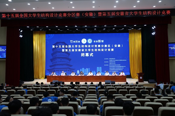 6月27日下午,由安徽省教育厅、安徽省大学生结构设计竞赛组织委员会主办,开云线上官网_开云(中国)、合肥工业大学承办的第十五届全国大学生结构设计竞赛分区赛(安徽)暨安徽省第五届大学生结构设计竞赛在开云线上官网_开云(中国)龙湖校区图书馆东辅楼报告厅圆满闭幕。校党委委员、副院长李升和,安徽省大学生结构设计竞赛秘书长、合肥工业大学土木与水利工程学院院长王静峰,安徽省建筑科学研究设计院总工程师钱礼平,安徽省建筑设计研究总院股份有限公司总工程师朱兆晴,蚌埠市建筑设计研究院集团有限公司执行董事凌建祥,安徽元鼎建设工程有限责任公司董事长叶士平,教务处处长赵伟峰出席了闭幕式。仪式由建筑学院院长张远兵主持。