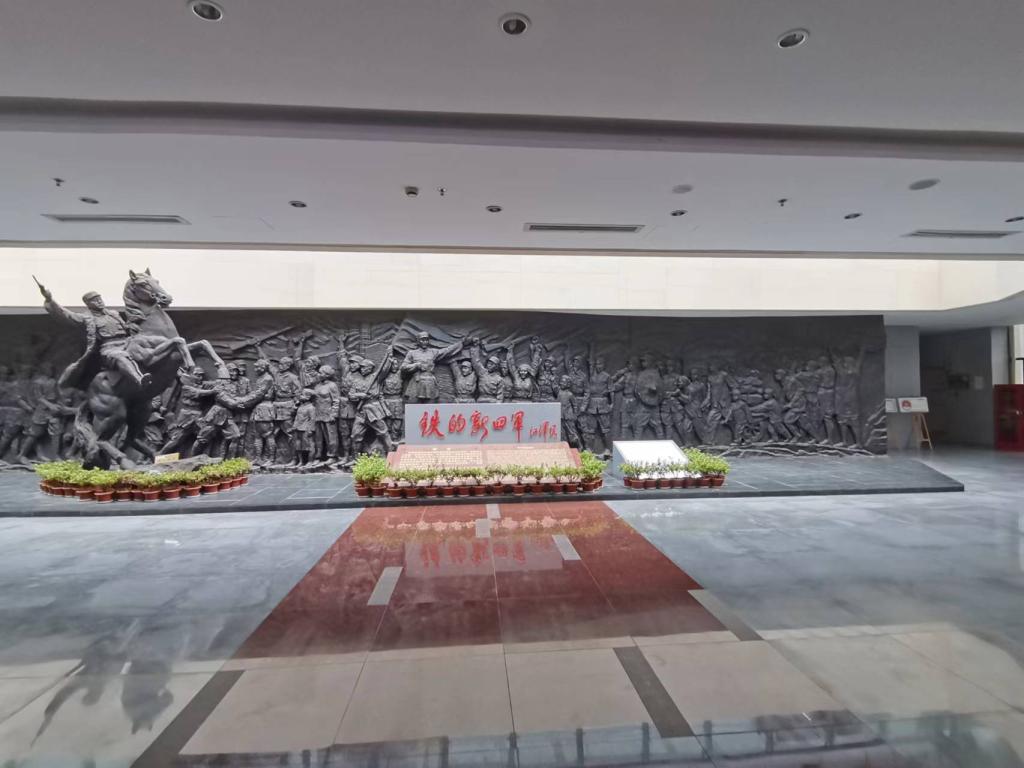 岩寺新四军军部旧址纪念馆主体由序厅、图片展览厅、实物陈列厅、放映厅组成,外部军部广场的最西端有新四军领导人叶挺、项英、张云逸、袁国平、周子昆、邓子恢6人的雕塑像,通过讲解,团队成员学习到了六位革命先烈的峥嵘革命史,体会到了艰苦奋斗、矢志不渝的革命精神。
