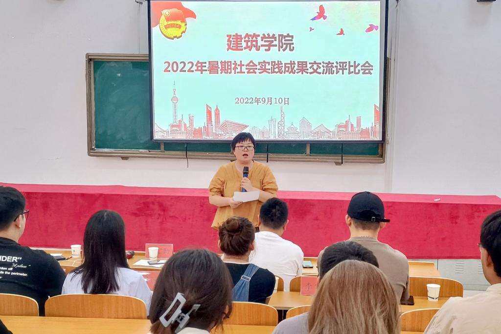 9月10日,建筑学院在敏行楼C102开展2022年暑期社会实践成果交流评比。建筑学院党委副书记谢宜勤,团委书记沈德艳,团委副书记武辉,学生团体负责人,各实践团队队长,2020级、2021级团支部书记参加此次活动。