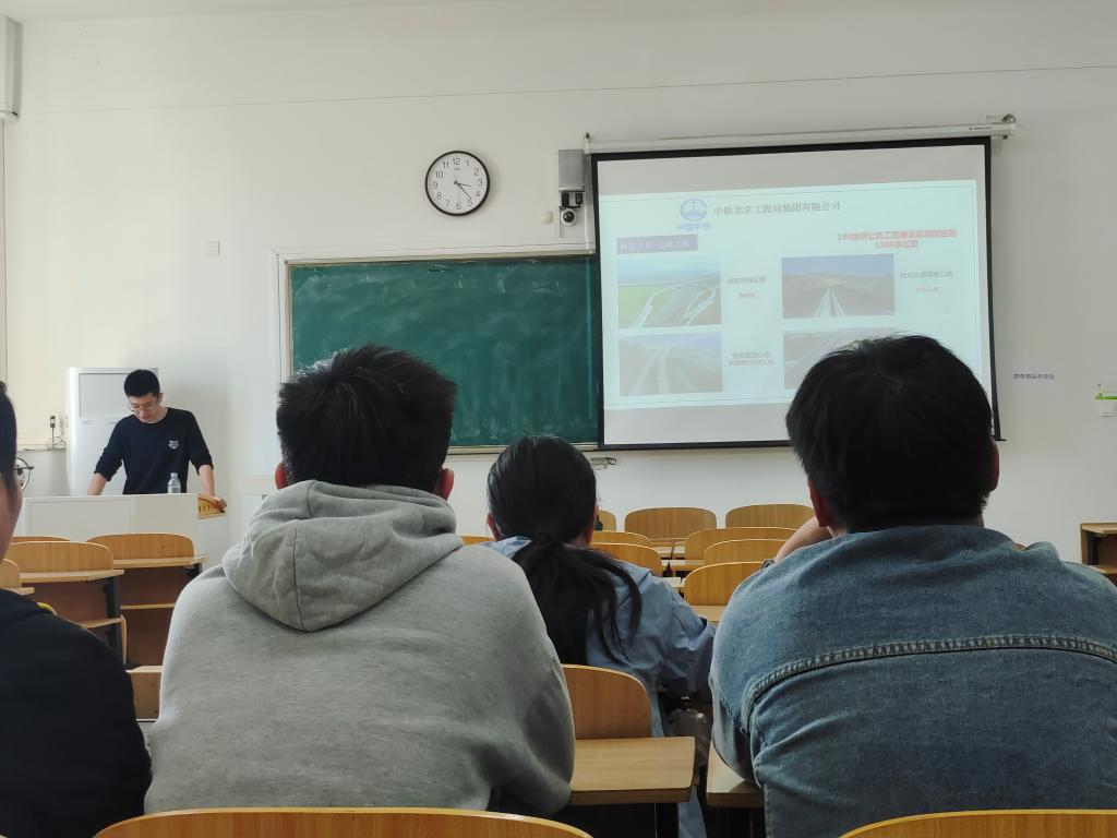 中铁北京工程局集团城市轨道交通工程有限公司,是世界500强企业中国中铁旗下中铁北京工程局集团有限公司以城市轨道工程施工为主的专业化全资子公司,公司发展迅猛,呈现高速扩张态势。负责此次招聘的席龙经理通过视频和PPT详细介绍了企业的发展沿革、业务范围、企业荣誉、招聘岗位、入职待遇以及发展前景等内容,并就毕业生比较关心的问题进行了详细回答。随后,席经理对有意向加入公司的毕业生进行了面试。