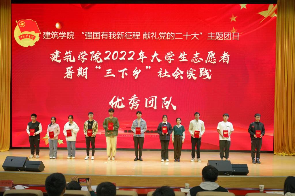 10月15日,建筑学院在图书馆东辅楼二楼报告厅开展“强国有我新征程 献礼党的二十大”主题团日。建筑学院党委书记傅友福,党委副书记谢宜勤、团委书记沈德艳,团学干部,2022年受到团内表彰的先进集体和优秀个人代表,以及2022级全体新生参加活动。