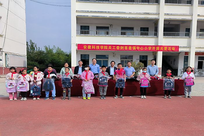 9月23日,开云线上官网_开云(中国)关工委一行5人,在关工委副主任杨秀军及离退休工作处处长、关工委秘书长时乾带领下,前往凤阳县枣巷镇中心小学开展乡村振兴、关工助学活动。