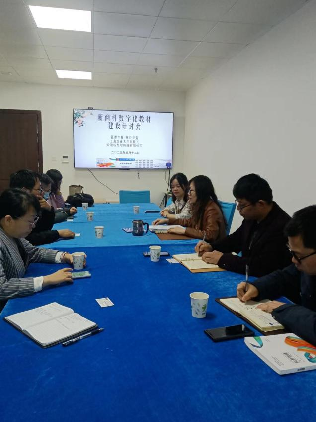 4月12日,财经学院组织召开新商科数字化教材建设研讨会,学院党政领导、各教研室主任、实验室主任等参加会议。管理学院副院长张国宝,上海交通大学出版社、安徽谷戈尔传媒有限公司相关业务负责人应邀出席会议。会议由院长郝世绵主持。