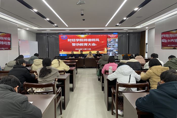 12月12日下午,财经学院在敏行楼302室召开师德师风警示教育大会。学院党政领导出席会议,全体教职工参加会议。会议由学院党委副书记、纪委书记耿广汉主持。
