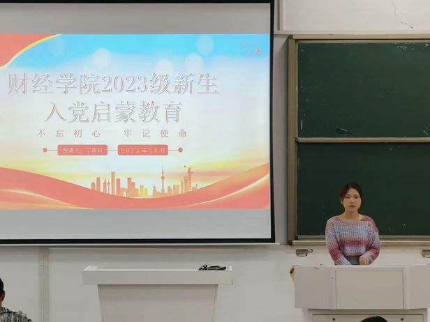 为切实加强新生对党的认识和了解,提高新生思想政治觉悟,引导新生坚定理想信念,端正入党动机,积极向党组织靠拢,10月11日起,财经学院组织开展2023级新生入党启蒙教育培训会,学院各专业学生党支部书记担任主讲,2023级全体新生分专业参加培训会。