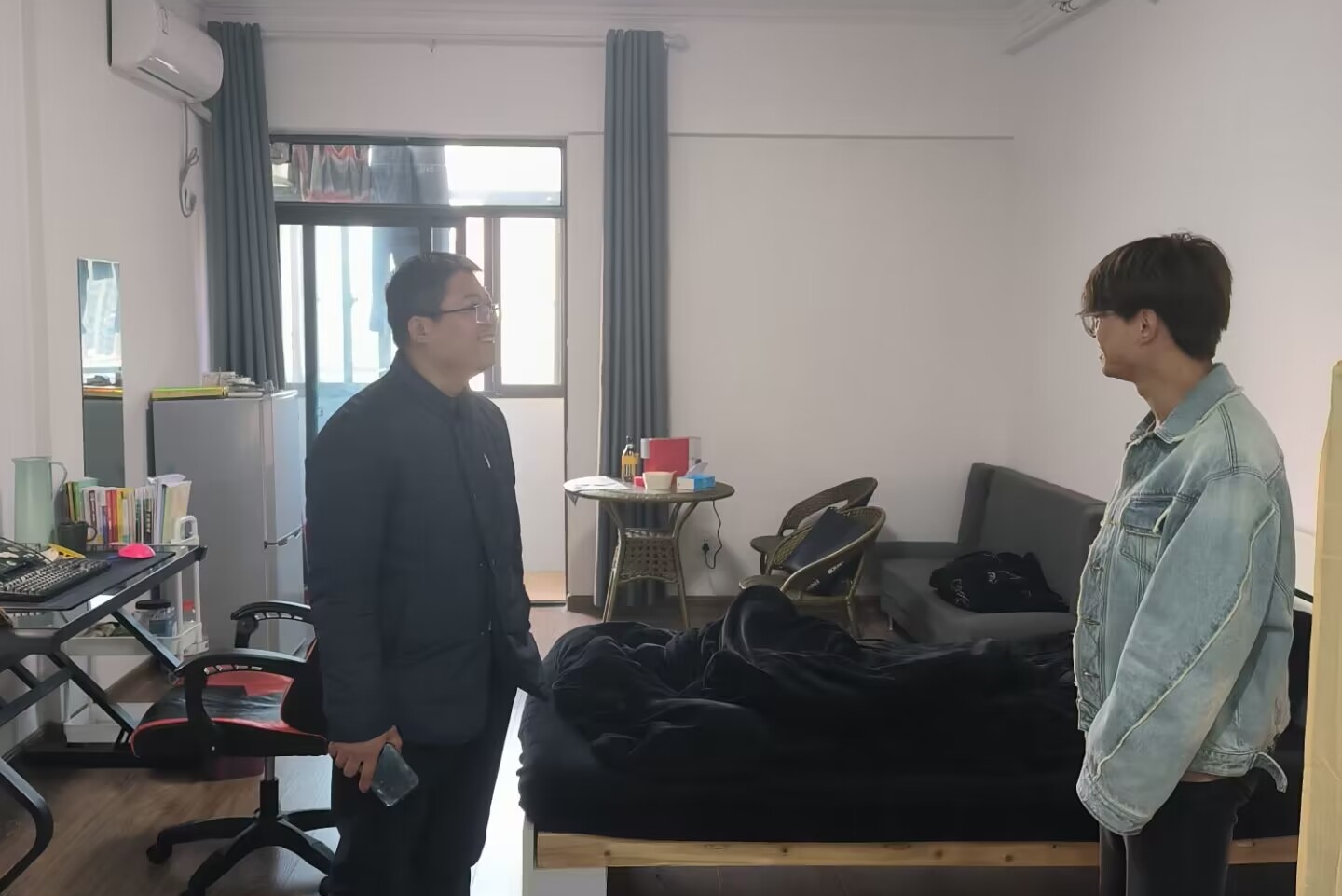 3月10日-11日,学院党委书记杜小明带领辅导员逐一走访学院外宿学生的住所,细心叮嘱学生注意人身安全、用电安全、消防安全和交通安全,详细了解学生的学习情况、思想动态和生活状态。外宿学生对学院领导及辅导员老师的关心表示感谢。