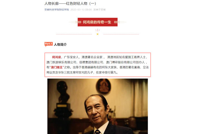 目前,学院微信公众号通过“人物长廊”红色财经人物专栏,推出“何鸿燊的传奇一生”“爱国商人霍英东”“红色金融家高捷成”“最穷的富人庄世平”“为红色金融工作鞠躬尽瘁的陈子岐”等多位红色财经人物。报道以写实手法,多角度、多事件、长跨度生动还原红色财经人物的民族情结和爱国义举。用故事形式,让当今财经学子与红色财经人物对谈交流,使新时代财经学子在红色财经文化的滋养中传承红色精神,深厚爱国情怀,坚定“四个自信”。