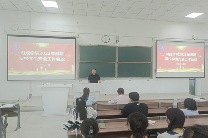 为加强暑期留校学生的安全教育和服务管理工作,确保留校学生度过一个健康、平安、充实、快乐的假期,7月5日,财经学院在致知楼C111召开2023年暑期留校学生安全工作专题会议。学院党委副书记、纪委书记耿广汉出席会议,2024届毕业班辅导员、全体留校学生参加会议。会议由学院纪委副书记、团委书记薛枫主持。