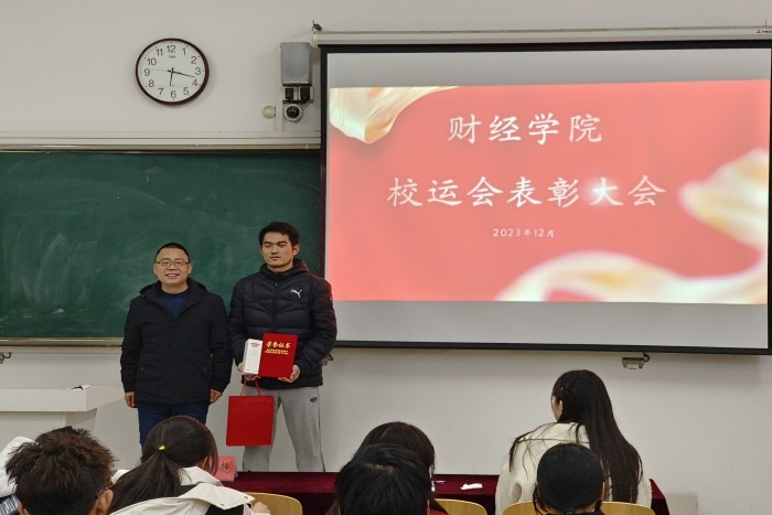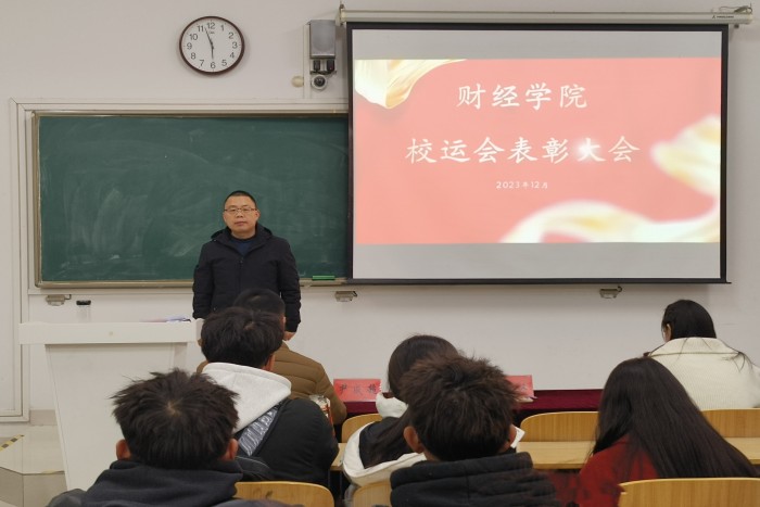 12月5日下午,财经学院在龙湖校区致知楼A105教室召开第三十二届校运动会总结表彰大会。学院党委副书记耿广汉、院团委书记薛枫、辅导员尹成超出席会议,第三十二届校运会参赛运动员与工作人员参加。会议由尹成超主持。