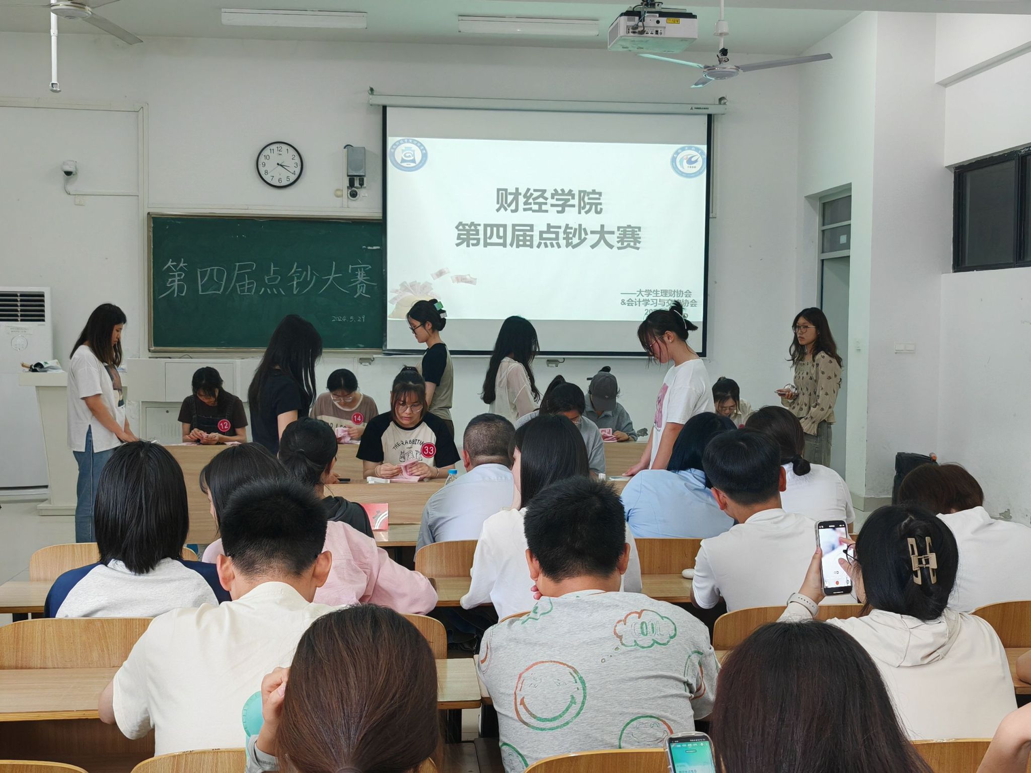 为激发大学生学习兴趣,提高大学生动手能力,培养具有就业竞争力和适应性的技能型人才,财经学院大学生理财协会和会计学习与交流协会于5月29日在致知楼A108成功举办第四届点钞大赛。中国邮政储蓄银行股份有限公司蚌埠市分行运营管理部总经理李学艳等一行六人应邀全程指导比赛。学院党委副书记耿广汉、辅导员王天云出席。
