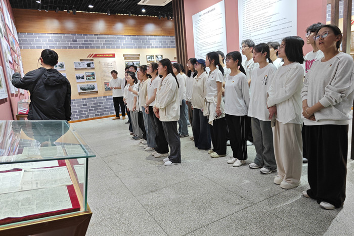 全体师生在庄严肃穆的烈士陵园陈列馆内,认真聆听讲解员深情讲述革命先辈的英雄事迹。通过丰富的历史图片、珍贵的文献实物,师生们深切感受到革命先烈为民族独立、人民解放事业抛头颅、洒热血的崇高精神。一个斑驳的军用水壶、一封泛黄的书信,都让在场青年学子真切体会到红色政权的来之不易,进一步坚定了听党话、跟党走的信念追求。随后,师生们怀着敬仰之情走进烈士陵园,向革命烈士们鞠躬默哀并瞻仰了烈士纪念碑,缅怀革命先烈的丰功伟绩,寄托对英雄先烈的哀思。在薛枫的领誓下,全体党员面向鲜红党旗庄严宣誓,铿锵誓言回荡在苍松翠柏间。会计224班团支书邓婕带领全体团员重温入团誓词。