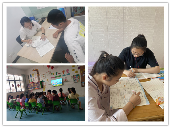 在支教中,各团队面对的是不同年龄段的孩子们,从小学到初中都有,志愿者们分工合作,按照自己擅长的英语、数学等科目认真备课。进行了充分的准备后,志愿者们顶着炎炎烈日来到实践点为孩子们辅导功课。他们帮助留守儿童检查、讲解暑假作业,从中发现孩子们的薄弱环节。不少农村孩子的英语基础比较薄弱,志愿者们在支教过程中动态调整了教授英语的时间和难度,更加适应孩子们的接受能力。对于学习有困难的孩子,他们除了在课堂上给予更多关注,还利用课后时间单独辅导,帮助其查缺补漏,巩固每个知识点。此外,志愿者们还带领孩子们在课余时间绘画、做团队素质拓活动等,帮助孩子们培养兴趣爱好,增强团队意识。