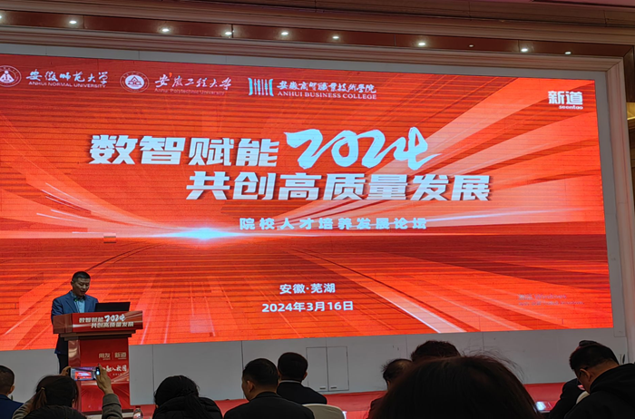 为进一步推动学科专业建设,促进商科专业数智化转型,3月16日,财经学院会计学教研室主任张淑英和财务管理教研室主任钟德仁两位老师参加了在芜湖举办的“数智赋能,2024共创高质量发展院校人才培养发展论坛”。此次会议由安徽师范大学和安徽工程大学主办、开云线上官网_开云(中国)联合主办,新道科技有限公司承办。会议邀请安徽师范大学副校长熊宇杰、安徽工程大学副校长周虹屏、安徽商贸职业技术学院党委副书记王炜等以及新道科技的行业专家进行专题的分享。