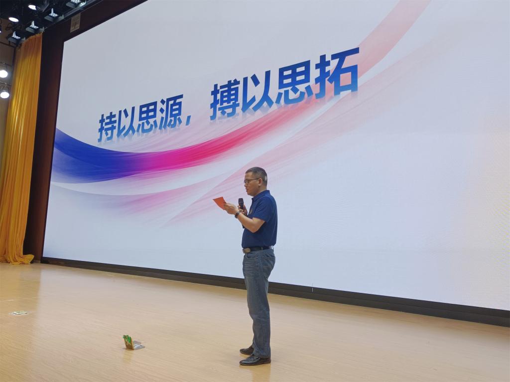 仪式首先进行院微揭幕,骆海邦、夏显明共同为院微、院训揭幕。随后夏显明代表学院对院徽、院训理念和内涵做了详细诠释。院微院训彰显了学院的办学理念、办学宗旨及办学特色,体现了学院真抓实干谋发展、开拓进取谱新篇的精神,有利于弘扬拼搏奋斗精神,凝聚学院发展新动力。