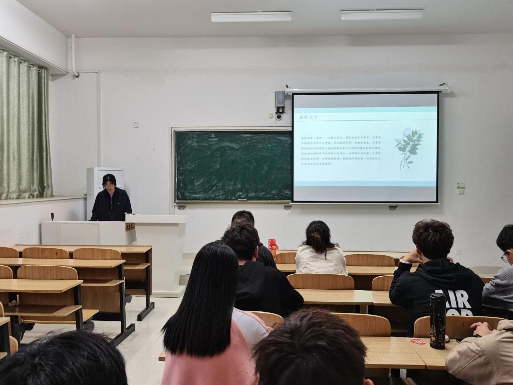 陈烁彤以“以诚为本,以信立人”为题,首先阐释了诚实守信的必要性和重要性,然后重点讲解了国家助学贷款政策、申贷流程、还款流程、违约后果。宣传征信知识,倡导同学们树立正确的消费观,拒绝不良贷款。陈烁彤表示“守信万里还嫌近,无信一寸步难行”,希望大家自觉履行国家助学贷款合同。