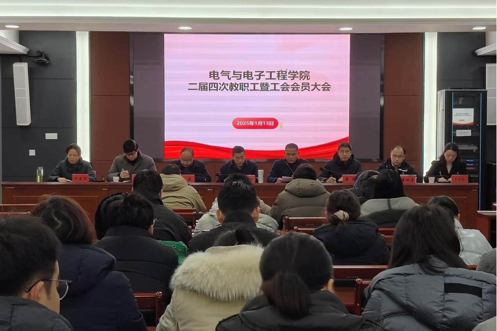 2025年1月13日,电气与电子工程学院于西辅楼111会议室召开二届四次教职工暨工会会员大会。学院党政领导及全体教职工参加了会议,会议由党委书记骆海邦主持。