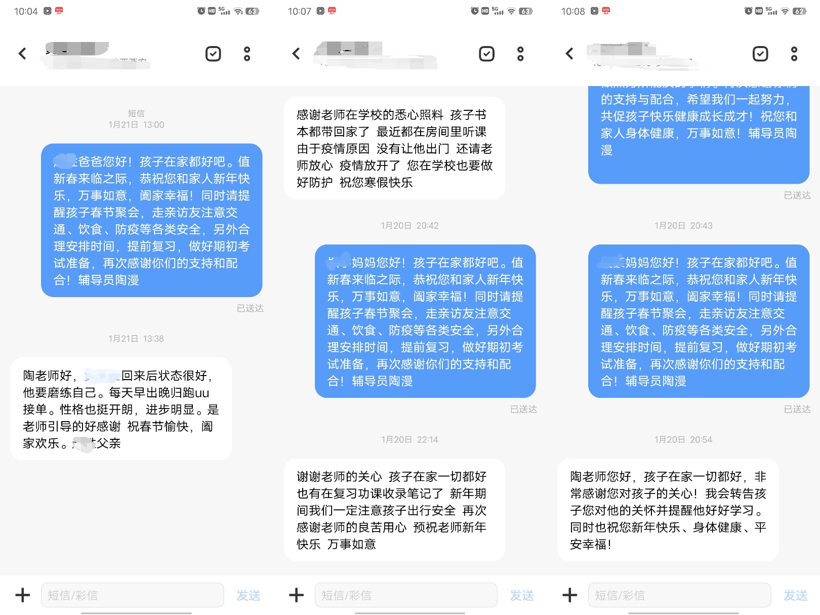 学院其他辅导员老师也分别通过视频连线、微信、QQ等形式开展了线上云家访,详细了解学生家庭的实际困难和寒假生活,向受访家庭介绍了国家、学校、学院等层面的奖助政策和育人活动及学生在校期间的表现及受资助情况,与家长共商促进学生成长的方法和举措。