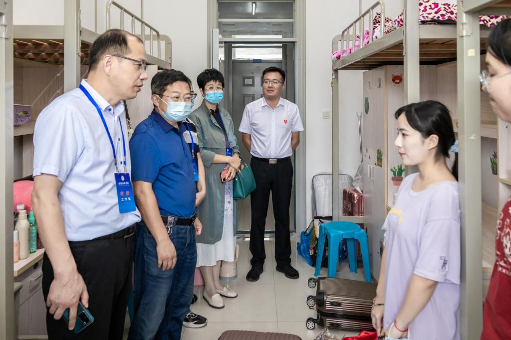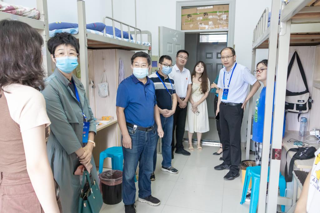 近日,带着对新生的关怀,管理学院党委书记丁景良,党委副书记、院长陈传万,党委副书记、纪委书记陶漫,党委委员、副院长郑谦,党委委员、副院长张国宝与学院全体辅导员一道深入学生公寓亲切看望刚入住的2022级新同学。