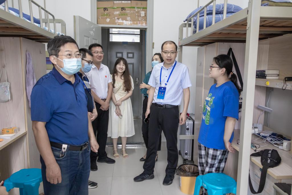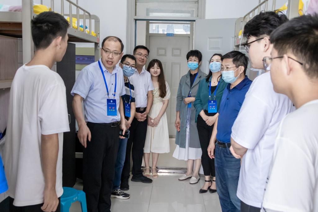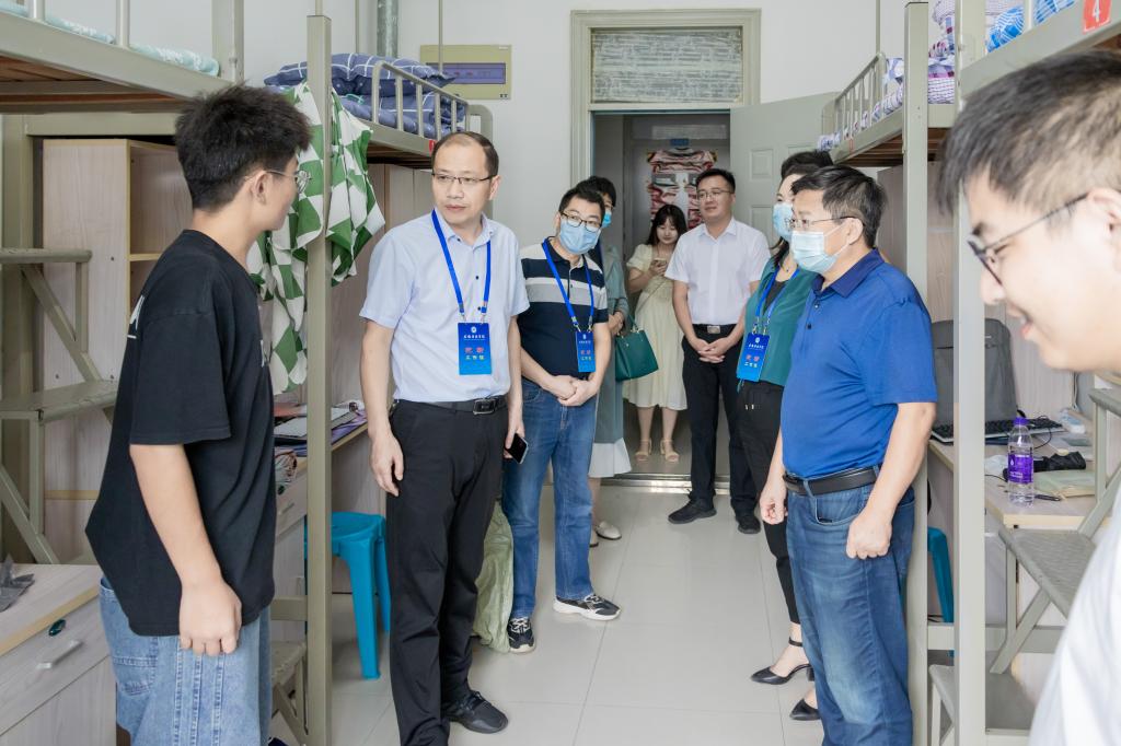 “家乡是哪里的?”“和爸爸妈妈一起来的吗?”“刚进大学感觉怎么样?”“要做好学业规划”“室友间相互熟悉了吗?”“平时要注意人身和财产安全”……丁景良、陈传万一行来到了德馨苑2号楼、3号楼,亲切走访看望广大新同学,每到一间宿舍,与同学们亲切交谈,问寒问暖,教育新生要尽早适应大学学习与生活,鼓励新生要早定学习目标,要求亲生要与家长保持经常沟通,要多与辅导员和老师加强交流,要注意疫情防控和自身安全,要锤炼品格、磨练意志、学会担当……