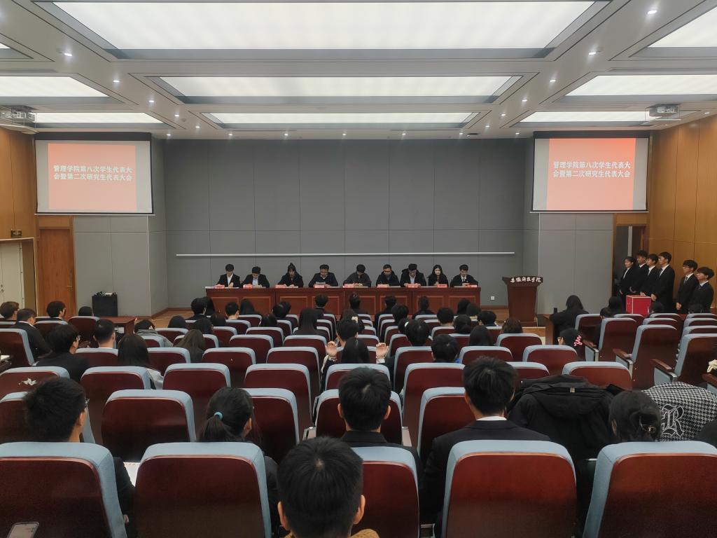 11月30日下午,管理学院第八次学生代表大会暨第二次研究生代表大会在龙湖校区敏行楼报告厅召开。学院党委副书记陶漫出席大会并致辞。学院全体辅导员、大会主席团成员出席大会开幕式并在主席台就座。