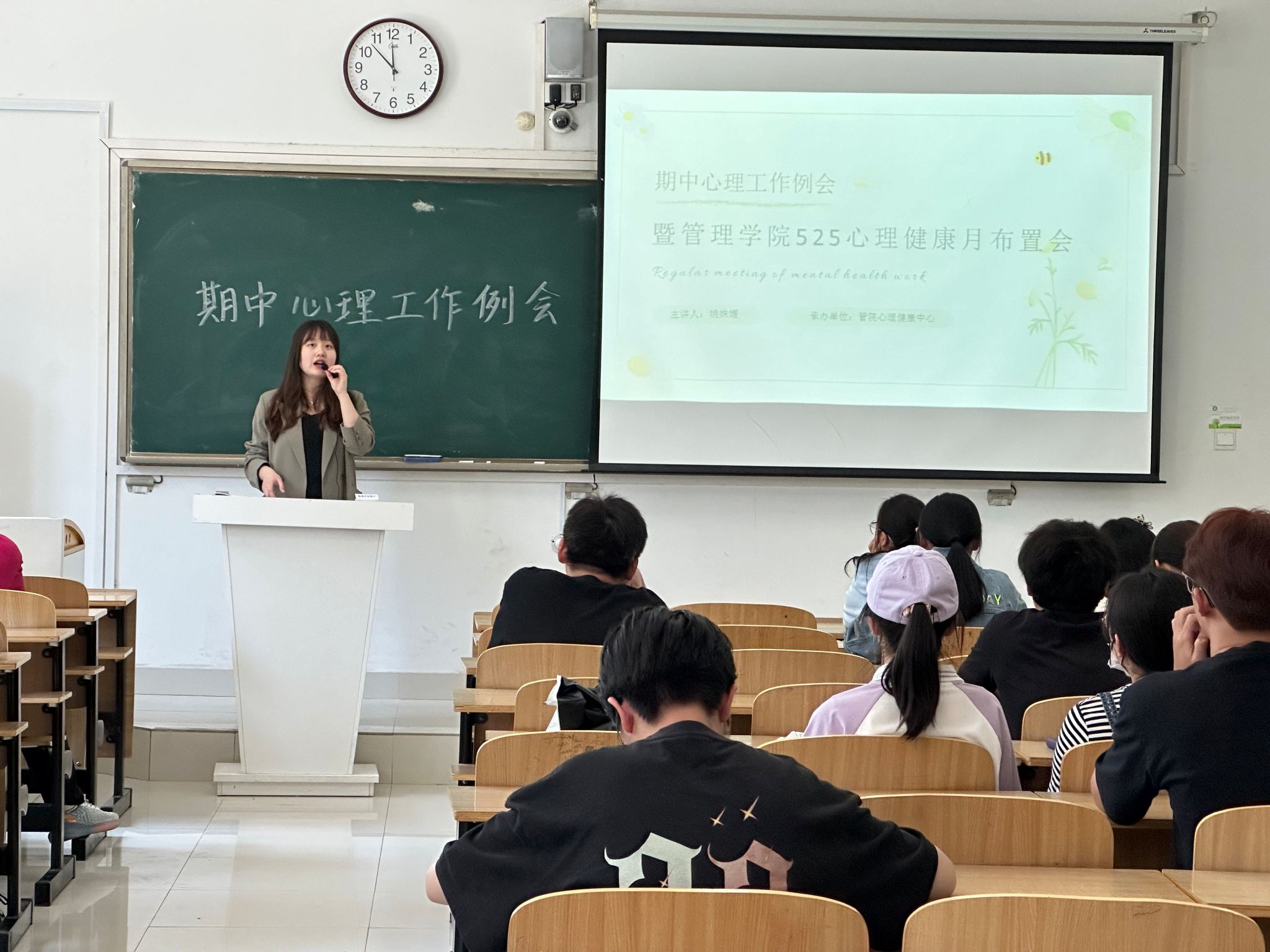 为进一步推进我院大学生心理健康教育工作的深入开展,促进大学生自我身心的健康成长,管理学院于2024年5月10日中午在致知楼C107教室召开“525”心理健康月工作布置会,管理学院全体心理委员参加会议,会议由学院专职辅导员姚姝媛主持。