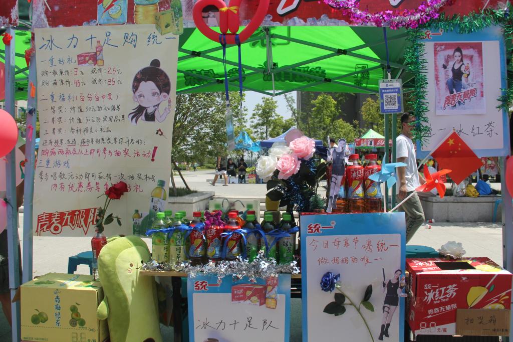 为进一步提高应用型人才培养质量,强化学生实践创新能力,丰富学生营销实践经验,夯实创业教育工作。5月9日上午十时起,由管理学院组织举办的第三届“冰红茶”创意营销大赛在龙湖校区德馨苑五栋前门广场拉开帷幕,管理学院院长赵伟峰,副院长张国宝亲临现场指导,赛事评委由统一集团皖北区域总经理王道端、工商管理系主任程业炳教授和市场营销系刘菊副教授担任。